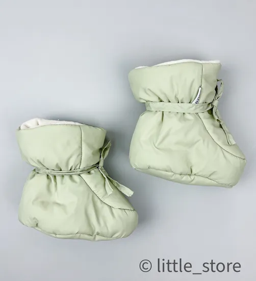 Теплые пинетки согреют ножки малышей в холодную погоду. Отлично подходят на осень/зиму в качестве обуви для неходящих малышей, либо для дополнительного утепления в конверт и тд. Пинетки выполнены из мембранной ткани с водоотталкивающей пропиткой, внутри 200 гр утеплителя холлофайбер, в качестве дополнительного утепления использован флис. Температурный режим данных пинеток - от +10 до -15 градусов. Размер 74-80 рассчитан на возраст от полугода до года-полутора, подходит на ножку до 14-14,5 см.