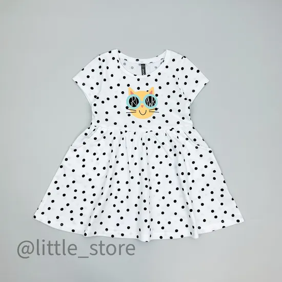 Нежное платье выполнено из легкой и тонкой ткани супрем. Аккуратный интересный принт на изделии выполнен стойкими гипоаллергенными красителями. Платье классического аккуратного кроя, отлично подходит на девочку любого телосложения. Размер равен росту ребенка.