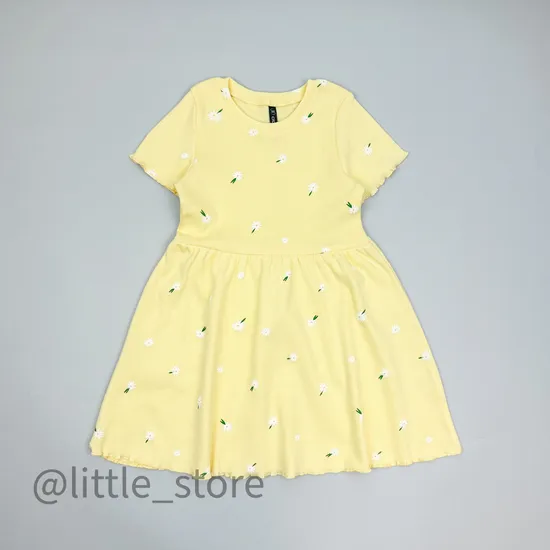 Нежное платье выполнено из эластичной ткани в рубчик, мягкого кашкорсе. Аккуратный милый принт на изделии выполнен стойкими гипоаллергенными красителями. Платье классического аккуратного кроя, отлично подходит на девочку любого телосложения. Размер равен росту ребенка.