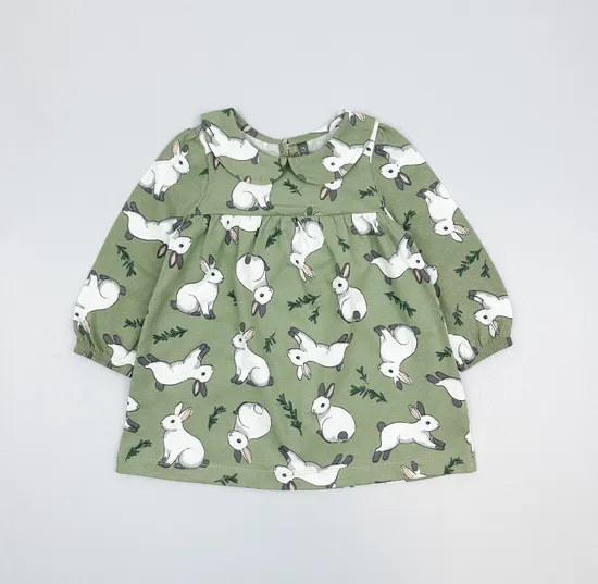 Платье хлопковое "Нежные зайчики" оливковый хаки