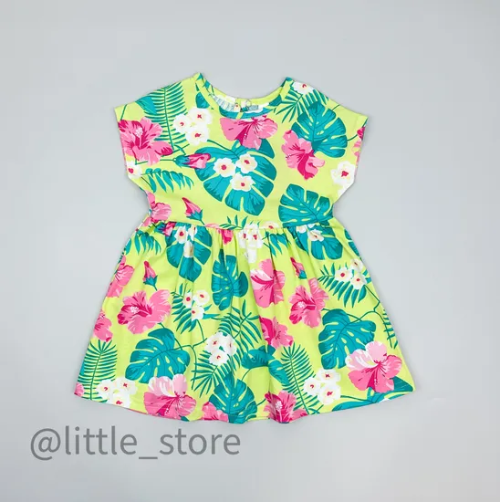 Красивое платье из качественного и тонкого хлопка, застегивается на горловине на кнопку. Платье с отрезной талией хорошо сидит на малышках. Ткань устойчива к стиркам и надолго отстается в отличном виде. Длина платья закрывает колени.