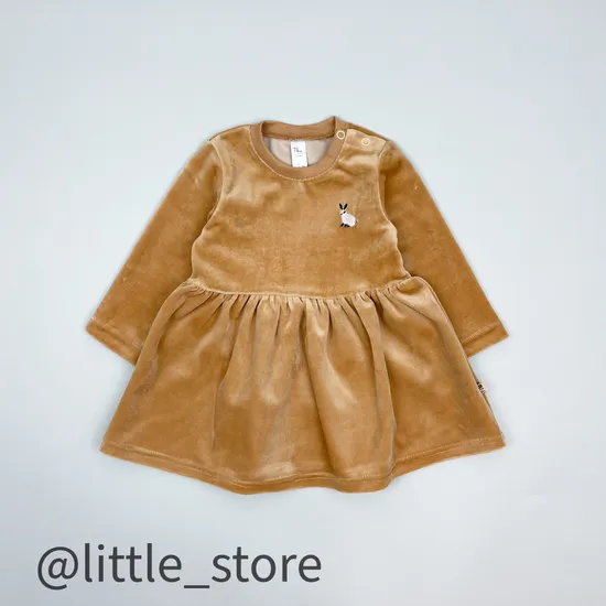 Платье выполнено из мягкого и нежного хлопкового велюра. Платье выполнено с отрезной талией, красиво смотрится на малышке любого телосложения. Для комфортного переодевания на горловине предусмотрены кнопки. Теплое платьице с длинным рукавом идеально подходит на холодный период года. Размер равен росту ребенка, 74 размер - рост 68-74см и тд.