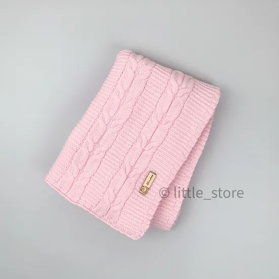 Чудесный легенький и невесомый пледик с узором косой размера 100см на 100см, прекрасно подойдет для выписки, прогулок и ежедневного использования дома в любое время года. Пледы связаны из мериносовой шерсти с небольшим добавлением акрила, такой материал обладает уникальным свойством теплопроводности - отводит лишнее тепло и сохраняет необходимое, создавая комфортный микроклимат для малыша. Плед достаточно легок в эксплуатации, прекрасно стирается в стиральной машине (в режиме бережной стирки при температуре не более 30 градусов), долго служит, не закатывается и не теряет своих свойств. Размер пледа 100 см на 100см