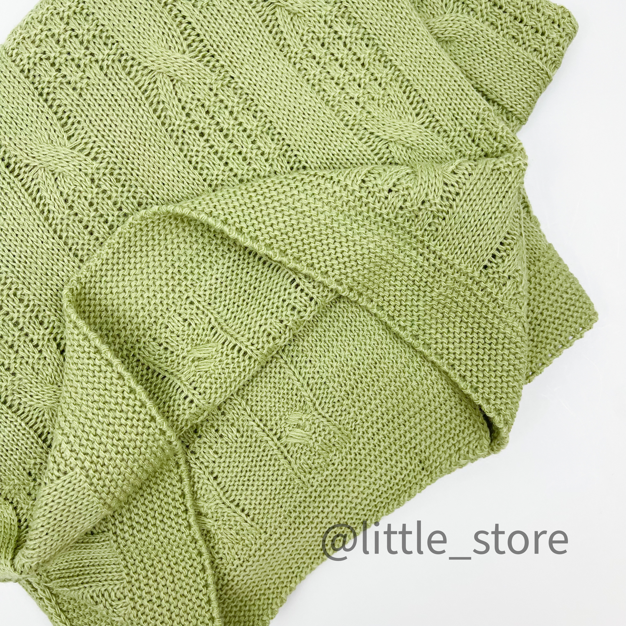Чудесный легенький и практически невесомый плед, прекрасно подойдет для выписки, прогулок в теплое время года и ежедневного использования дома. Пледы связаны из 100% хлопковой пряжи легкой, ажурной вязкой, благодаря этой вязке плед очень легкий, абсолютно не ощущается на теле, но при этом хорошо сохраняет тепло внутри, за счет пышности переплетения нитей. Плед достаточно легок в эксплуатации, прекрасно стирается в стиральной машине (в режиме бережной стирки при температуре не более 30 градусов), долго служит, не закатывается и не теряет своих свойств. Размер: 90см / 100см.