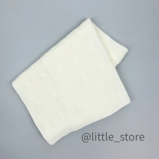 Плед вязаный Молочный, хлопковый; 90х100