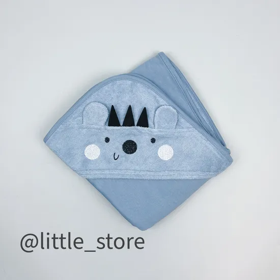 Полотенце хлопковое/махровое "Ежики" пыльно-синяя