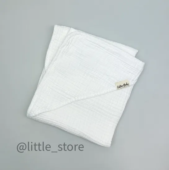 Отличное полотенце выполнено из особо мягкого четырех слойного муслина самого высокого качества.  Уголок для головы на полотенце позволяет максимально укутать малыша. Аккуратный размер 75х75см позволяет использовать изделие не только дома, но и брать егов поездки. Полотенце выполнено из 4 слоев нежного дышащего муслина: моментально впитывает влагу, быстро сохнет, сохраняет тепло малыша и укутывает нежностью; с каждой стиркой изделие становится мягче.
