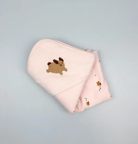 Полотенце махровое/хлопковое "Собачка" бежево-розовое