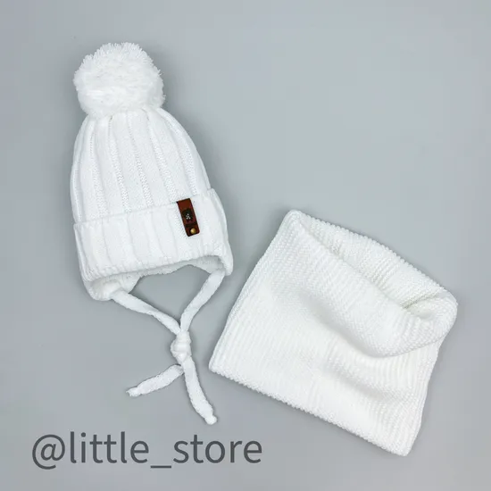 Демисезонный комплект выполнен из качественной полушерстяной пряжи, приятной на ощупь. Шапка дополнена хлопковым подкладом, шапочка без дополнительного утепления. Снуд надевается в два оборота на комбинезон, за счет чего сохраняет тепло и отлично защищает от ветра. Комфортный температурный режим - от -5/-10 (с капюшоном) до +10 градусов. Шапка украшена аккуратным ниточным помпоном и бирочкой, которую можно снять. Размер шапочки равен окружности головы, снуд единого размера - эластичный, что позволяет носить его поверх верхней одежды.
