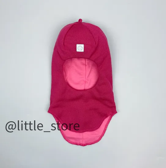 Шапка-шлем из полушерстяной пряжи. Внутри утеплитель Fellex® 60 г/м2. Такой шлем подойдет на температуру от 0/-5 до -25 градусов. В области ушей дополнительный утеплитель из флиса. Подкладка из хлопкового трикотажа. Размер шлема равен окружности головы ребенка