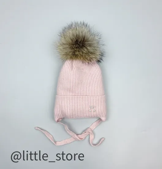 Шапка зимняя "Бантик" Св пудра