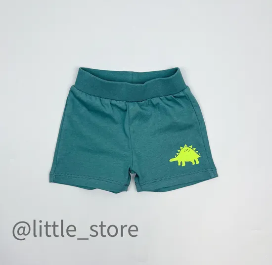 Шорты хлопковые "Динозавры" темный малахит