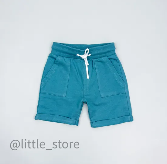 Шорты выполнены из однотонного футера 2нитки, мягкого и качественного. Пояс регулируется шнурком, в шортах предусмотрены 2 удобных кармана, низ обработан плоскими швами.