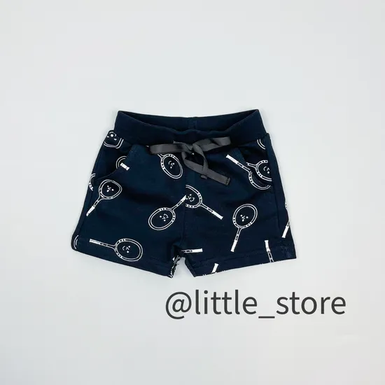 Шорты "Теннис" из футера, Черные с рисунком