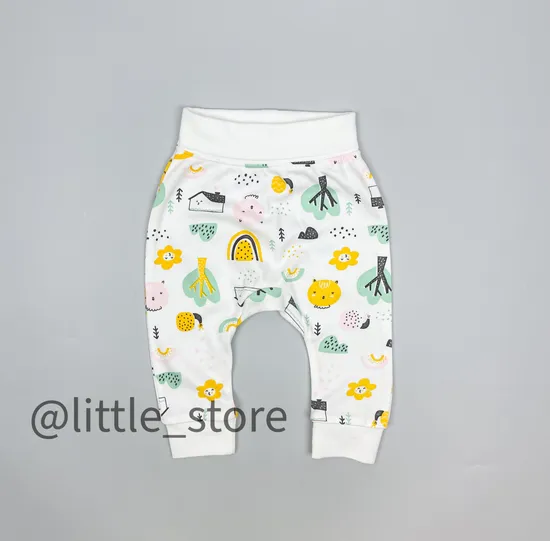 Штанишки выполнены из хлопка-интерлок самого высокого качества-пенье, который не деформируется от носки, стирки. Мягкий широкий пояс с возможностью отвернуть его. Ножки у штанишек на манжетах. Благодаря удачному крою, штанишки отлично сидят на малышах любой комплекции.