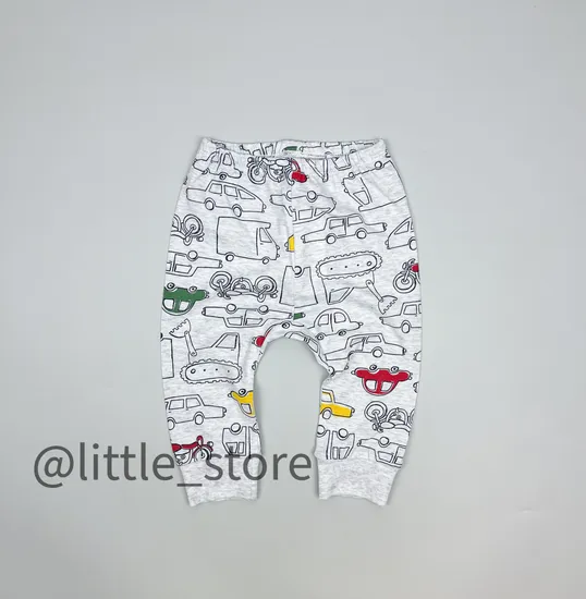 Штанишки хлопковые "Машинки" серый меланж