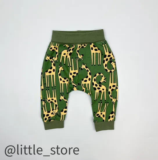 Штанишки выполнены из хлопка-интерлок самого высокого качества-пенье, который не деформируется от носки, стирки. Мягкий широкий пояс с возможностью отвернуть его. Ножки у штанишек на манжетах. Благодаря удачному крою, штанишки отлично сидят на малышах любой комплекции.