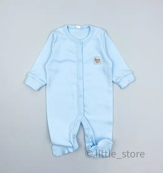 Слип выполнен из мягчайшего качественного хлопка, приятного на ощупь.Слип застегивается на кнопки по всей длине. Ножки закрыты во всех размерах