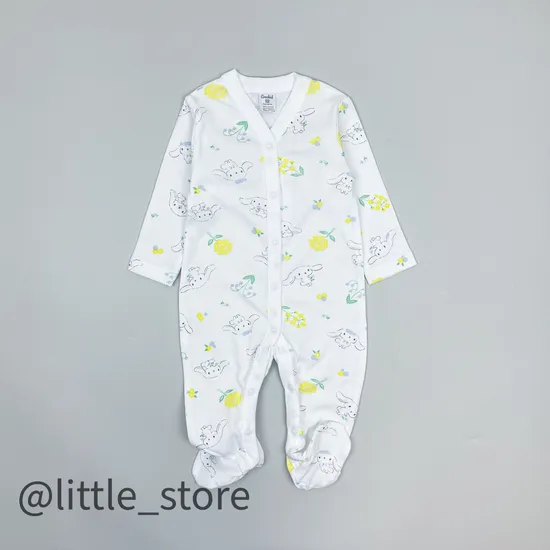 Слип хлопковый на кнопках, выполнен из мягчайшего 100% гипоаллергенного хлопка-рибаны. Рибана - материал, отлично подходящий для теплого времени года, тонкий, эластичный и не жаркий. Слип с закрытыми ножками во всех размерах. Размер 56 выполнен швами наружу и с антицарапками на рукавах.