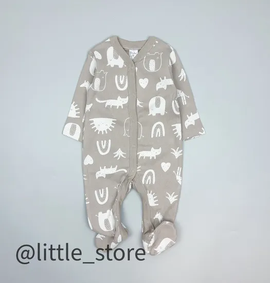 Слип выполнен из мягчайшего качественного хлопка-рибаны, очень эластичного и приятного на ощупь. Эластичная ткань приятна и комфортна в эксплуатации, садится по фигуре малыша и не сковывает движений. Слип по всей длине застегивается на кнопки, не содержащие никель, ножки закрыты во всех размерах. Размер 56 выполнен швами наружу с антицарапками на ручках.
