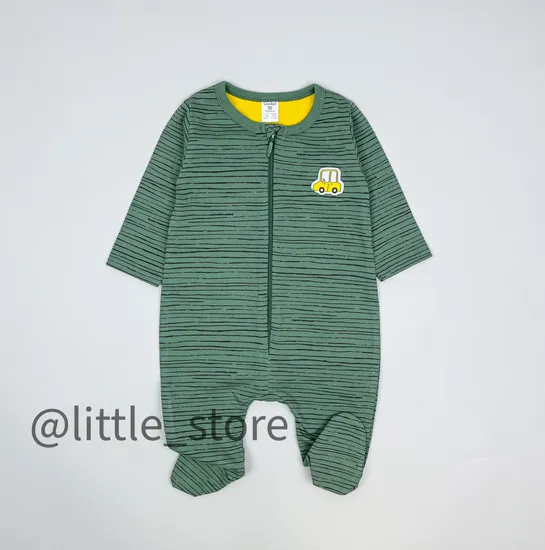 Слип хлопковый на молнии, выполнен из мягчайшего 100% гипоаллергенного хлопка-супрем. Супрем - материал, отлично подходящий для теплого времени года, тонкий, эластичный и не жаркий. Слип с закрытыми ножками во всех размерах, застегивается на молнию, - молния закрыта планкой и не соприкасается с телом малыша, на горловине защита от защемления.