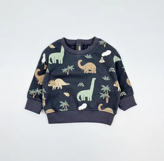 Свитшот "Динозавры" из футера с начесом, Графит