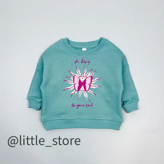 Свитшот выполнен из плотного и качественного футера 3нитки с начесом внутри. Комфортный свободный крой стильно смотрится и удобен в эксплуатации. Удобные манжеты на рукавах и по низу кофточки. Широкая эластичная горловина хорошо тянется и не причинит дискомфорта малфшу при переодевании.