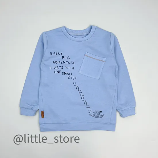 Свитшот выполнен из качественного футера 2нитки с петлей внутри. Удобные манжеты на рукавах и по низу свитшота. Широкая эластичная горловина хорошо тянется и не причинит дискомфорта ребенку при переодевании.