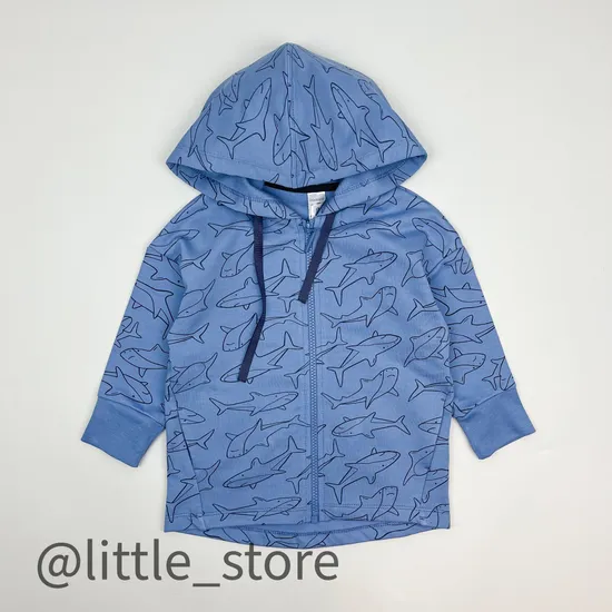 Толстовка из футера на молнии "Акулы" дымчато-синий