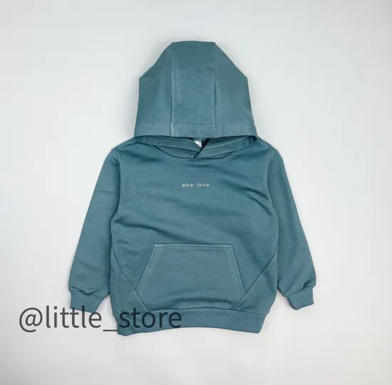 Толстовка из футера "One love" Серо-зеленая